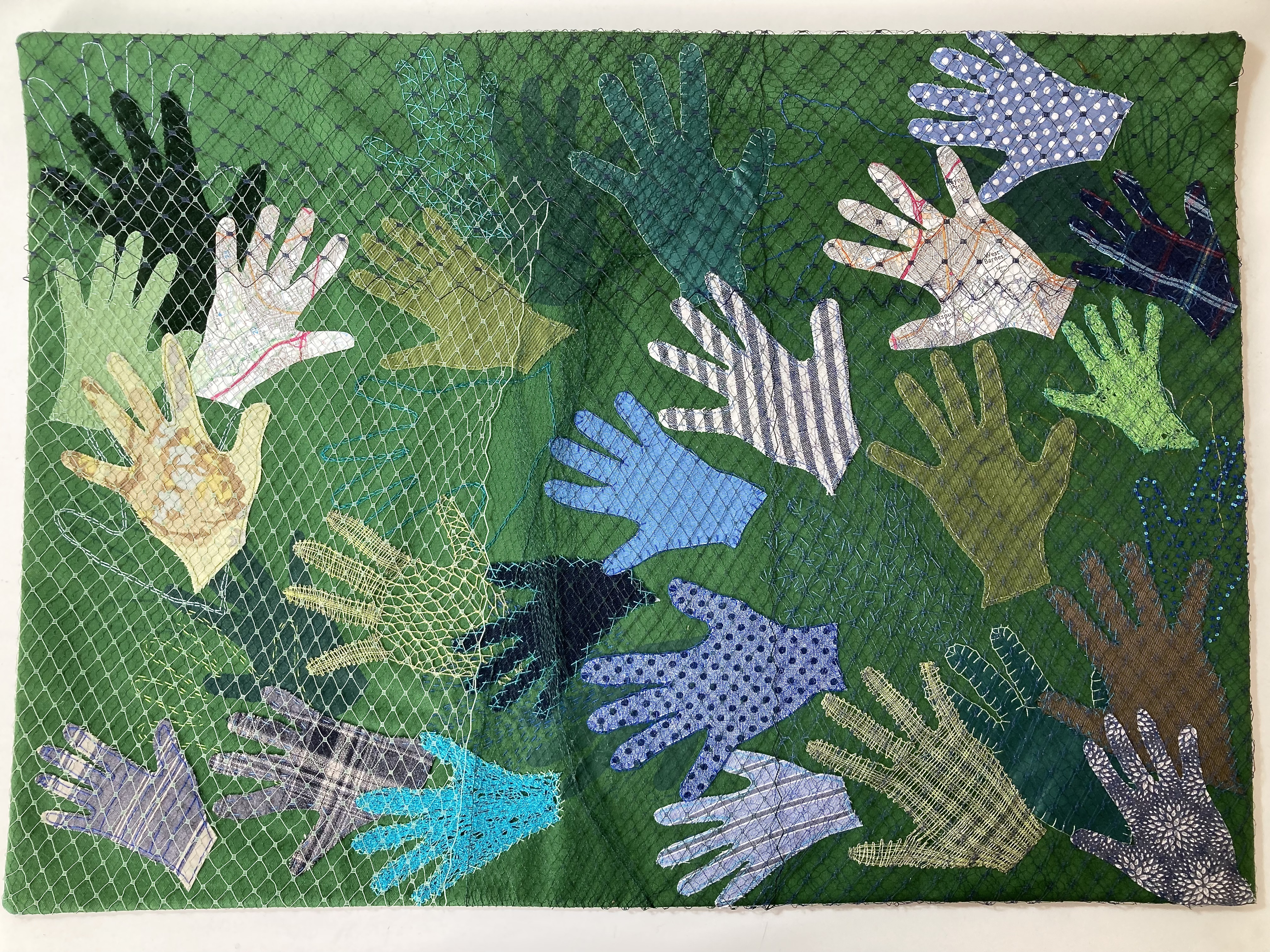 I was delighted to host my first solo textile art show ” A Kindness of Strangers” at the Norman Plastow Gallery, Wimbledon Village in May 2025 and made a new work in association with the adjacent Wimbledon Museum. More details can be found here
